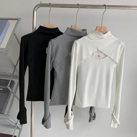 Korean Retro Print Irregular Tailoring Stitching Long-Sleeved Shirt Top Women'S Clothing