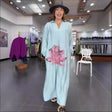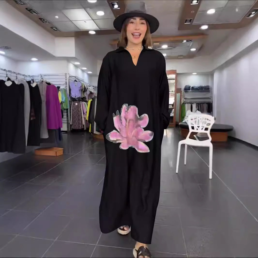 Urban Fashion Loose Flower V-neck Long-sleeve Dress